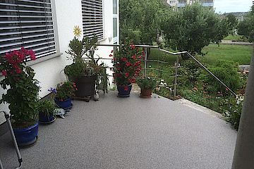 Alle Mitbewohner und wir freuen uns über die neuen Balkone, die sehr angenehm sind, wenn die Sonne darauf brennt. Leider tut uns die Sonne nur immer wieder mal den Gefallen, aber dann ist es schön, barfuss auf der angenehmen Oberfläche zu stehen.